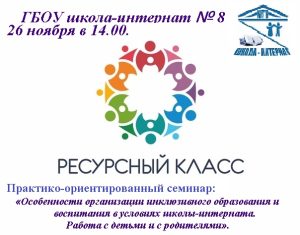 26 ноября 2025 года на базе Государственного бюджетного общеобразовательного учреждения школы- интерната № 8 Пушкинского района Санкт-Петербурга прошел районный практико-ориентированный семинар на тему «Особенности организации инклюзивного образования и воспитания в условиях школы-интерната. Работа с детьми и с родителями».