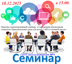 18 декабря 2025 года на базе Государственного бюджетного общеобразовательного учреждения школы- интерната № 8 Пушкинского района Санкт-Петербурга прошел районный практико-ориентированный семинар на тему «Современная инклюзивная социально-образовательная среда для детей с ОВЗ в основной школе».